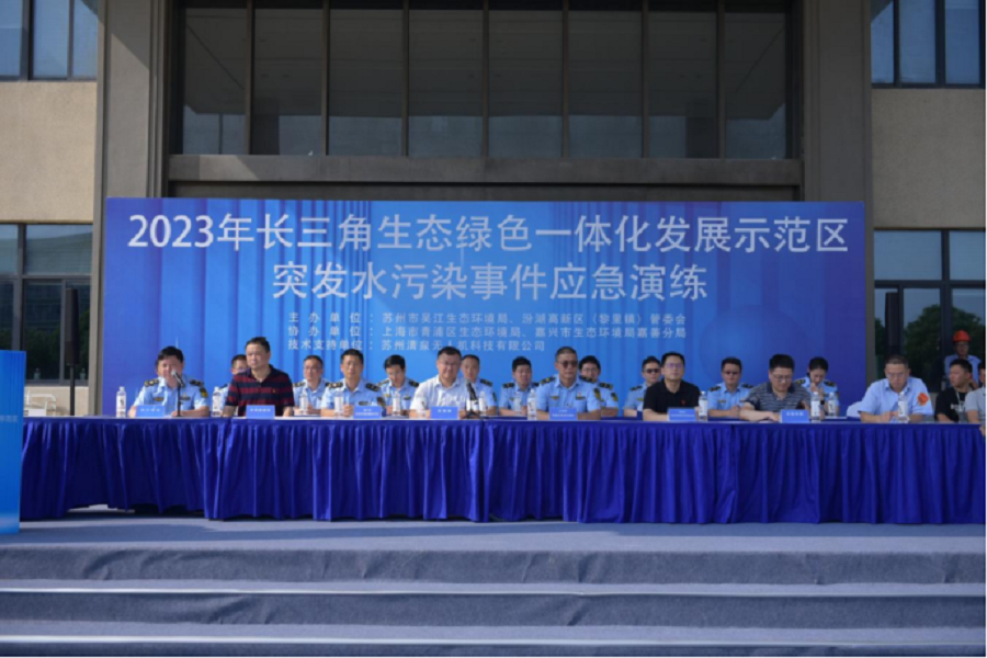 演练前还举行了长三角生态绿色一体化发展示范区环境应急管理党建联盟签约、环应急物资库揭牌和应急物资装备展示仪式。